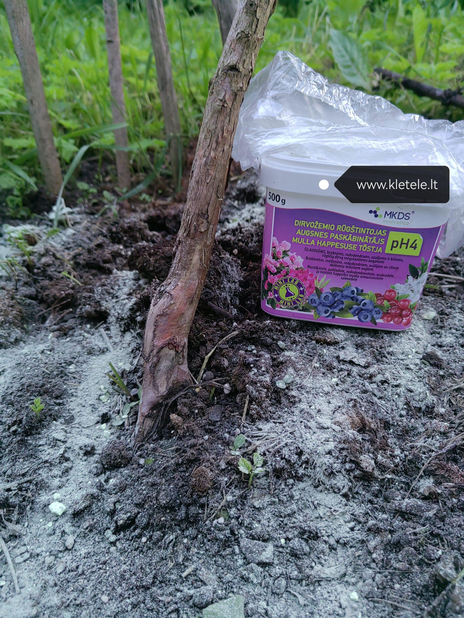 Po mėnesio patikrinkite dirvos rūgštingumą ir, jei reikia, vėl panaudokite šį preparatą.