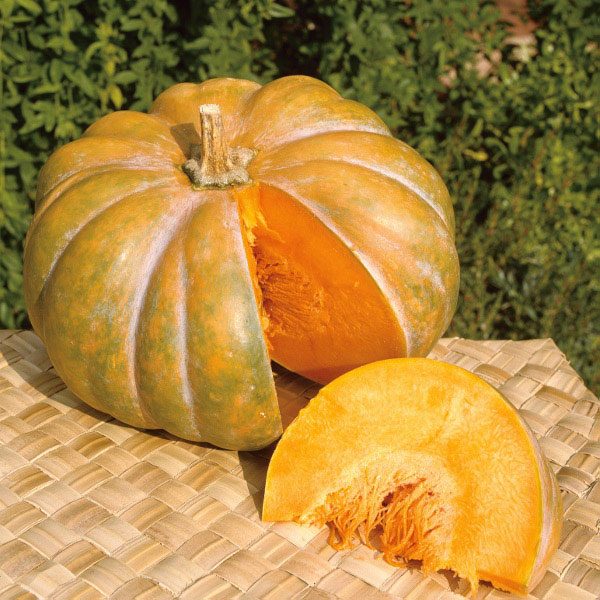 Muskusiniai moliūgai ‘Muscquee de Provence’ – NAUJIENA 2022 m.- tai vėlyva (120 d.) kvapniųjų moliūgų veislė. Vaisiai apvaliai plokšti, stipriai briaunuoti, apie 5 kg svorio, 25-40 cm diametro, vienodo dydžio. Minkštimas storas, oranžinis, aromatingas ir skanus. Odelė žalia, visiškai sunokusių vaisių – oranžinė. Tinka ilgai laikyti. Tinka troškiniams, uogienėms, padažams, sriuboms gaminti bei kepiniams pagardinti.