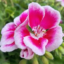 IŠSKIRTINUMAS: klasikinės pelargonijos rožiniais žiedais.